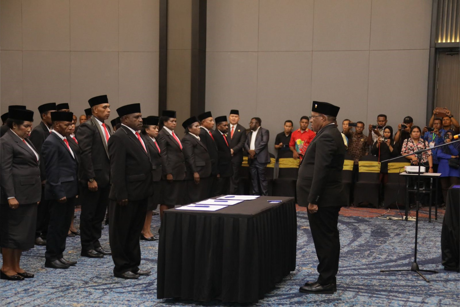 SORONG - Wakil Menteri Dalam Negeri (Wamendagri) John Wempi Wetipo melantik 33 anggota Majelis Rakyat Papua (MRP) Provinsi Papua Barat Daya masa jabatan 2023-2028. Jumlah tersebut terdiri dari 11 anggota kelompok kerja (Pokja) agama, 11 anggota Pokja adat, dan 11 anggota Pokja perempuan. Pelantikan ini berlangsung di Hotel Aston Kota Sorong, Papua Barat Daya, Kamis (14/12/2023).